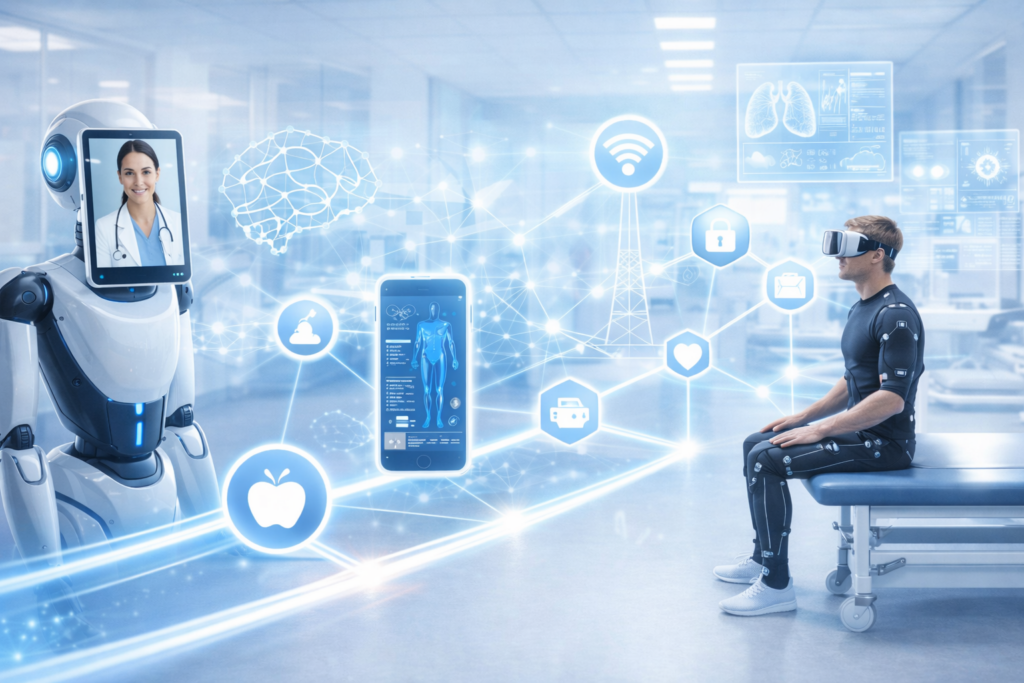 Der Forschungsschwerpunkt „Technologiestränge“ zielt auf die Entwicklung intelligenter Algorithmen und Systeme für digitale Gesundheitsversorgung ab – von umfassenden Selbstassessments zur Diagnose, Therapie und Rehabilitation bis hin zu robotischer Telepräsenz für virtuelle Besuche. Ergänzend werden sichere Kommunikationsinfrastrukturen geschaffen, die medizinische Zusatzdienste zuverlässig mit modernen Breitbandnetzen verknüpfen.